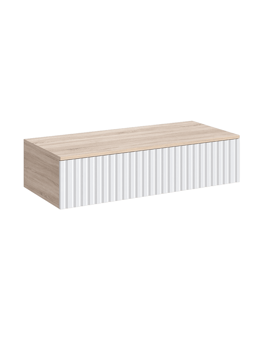 Тумба навесная под телевизор в деревянном исполнение с белым цветом. Рифленый фасад.