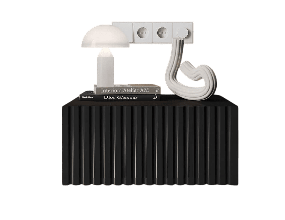Тумба в черном цвете с рифленым фасадом (вертикальные полоски).